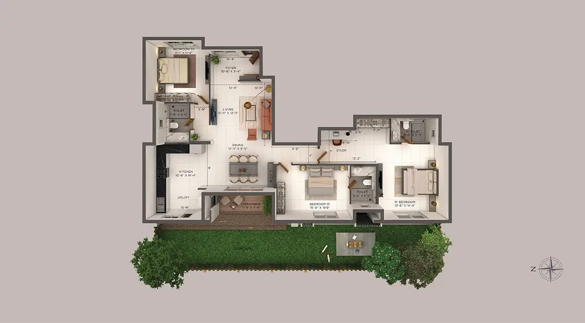 Embrace a lifestyle of unparalleled luxury and harmony with our Garden Villaments at Provident Deansgate. Wake up to the gentle caress of sunlight filtering through lush foliage, as you enjoy your morning coffee amidst the serenity of your own private garden. These meticulously designed 3 BHK residences redefine urban living by creating a haven that encapsulates the essence of elegance and leisure.